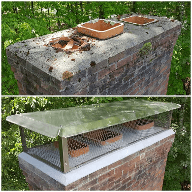 Chimney Cap Screen: This screen will prevent birds from nesting in the flue, squirrels from falling in to the fireplace, and other rodents from gaining access. (Warning-might delay Santa clause from accessing your house). Atlanta chimney cleaning offers installation of screens on you existing chimney caps.
